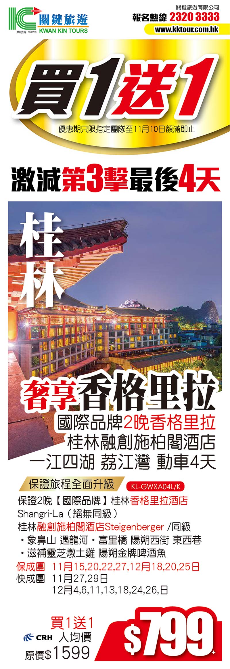 關鍵旅遊優惠再加碼!【買1送1】激減第3擊!最後4天,名額有限,先到先得!