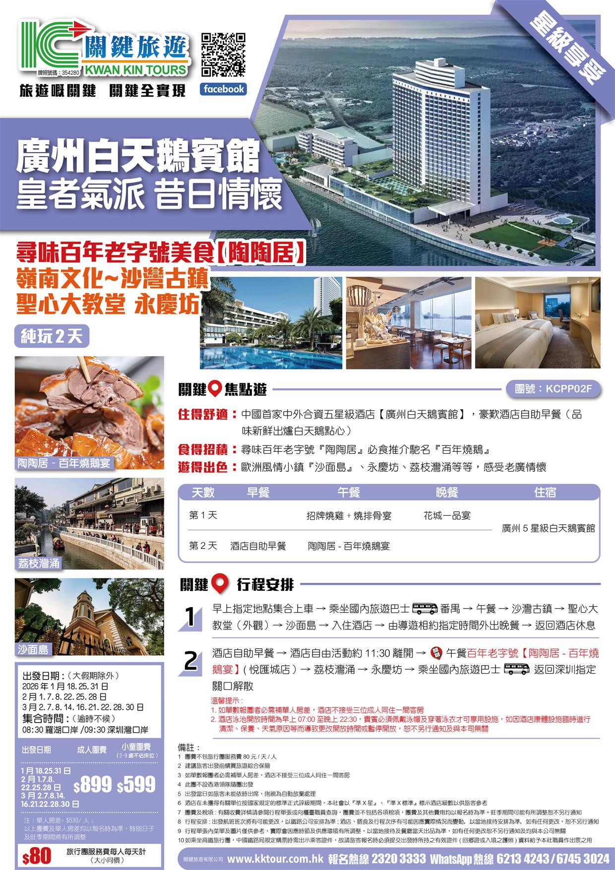 | 02月08日 | 星期日 | $899 | $599 |