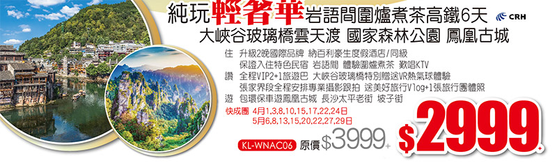 張家界【純玩免稅】全包重要景區 天子山 袁家界 鳳凰古城 入住5星陽光酒店 高鐵5天 買一送一 每人只要1299+!