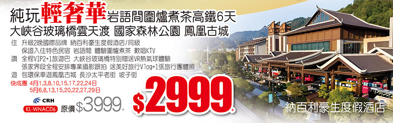 張家界【純玩免稅】全包重要景區 天子山 袁家界 鳳凰古城 入住5星陽光酒店 高鐵5天 買一送一 每人只要1299+!