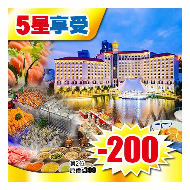 5星享受 惠陽裕華鉑金酒店 豪歎酒店海鮮自助餐(首團頭10位提升親子/商務套房)純玩2天 只要399!