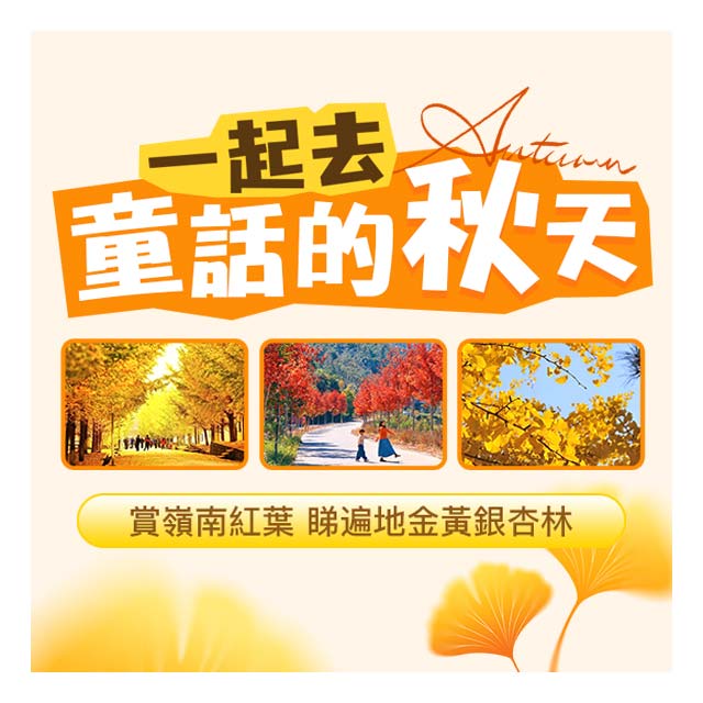 【童話的秋天】秋日楓景 邂逅紅色童話世界 賞杏好時機 滿城盡披黃金甲 純玩2/3天 只要299+!