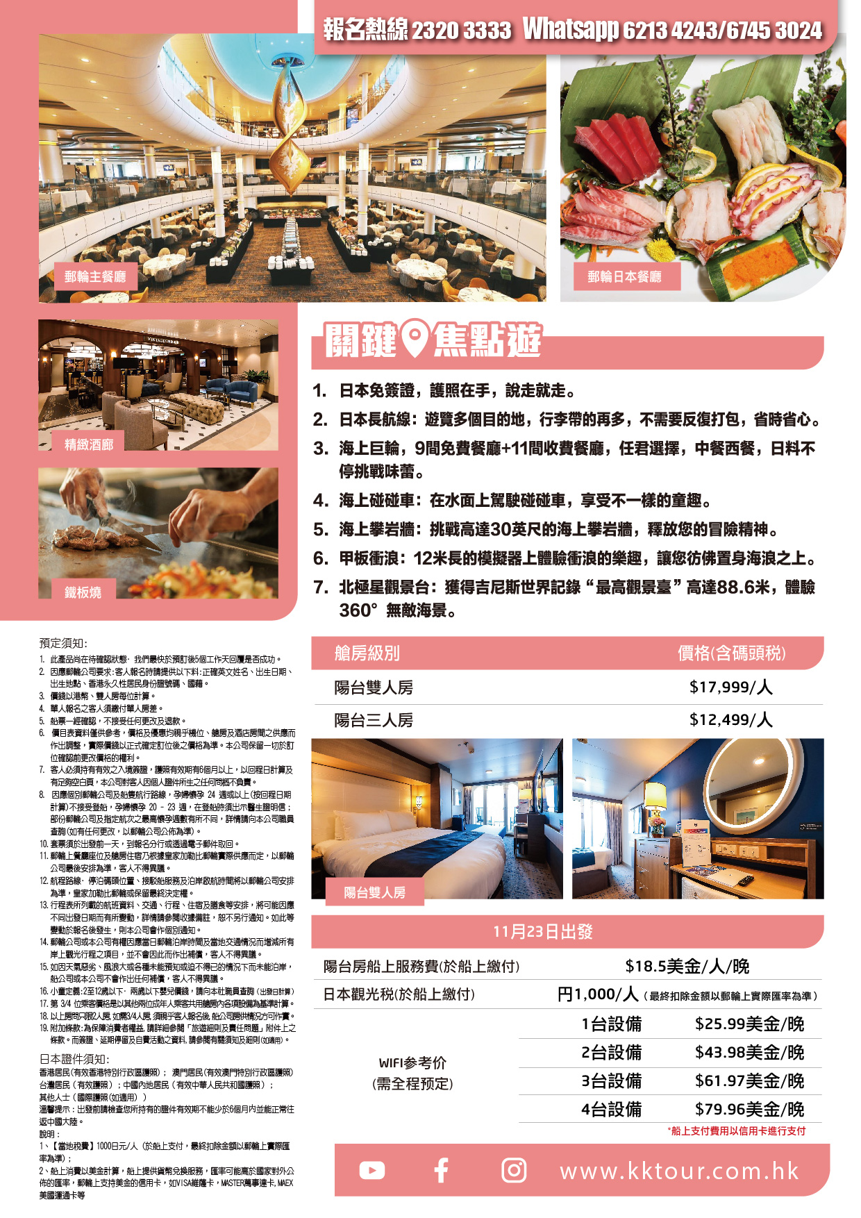 熱線電話 : 2320 3333 旅遊咨詢 WhatsApp : 6745 3024 / 6213 4243
