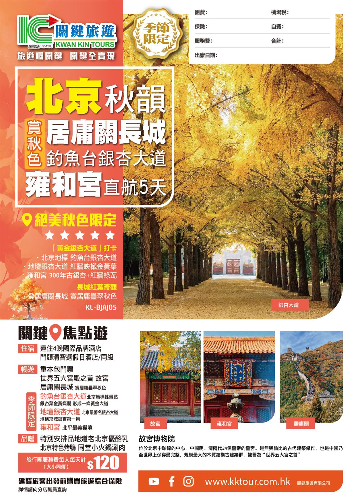 【北京秋韻•賞秋色 】居庸關長城 釣魚臺銀杏大道 雍和宮 故宮博物院 直航5天