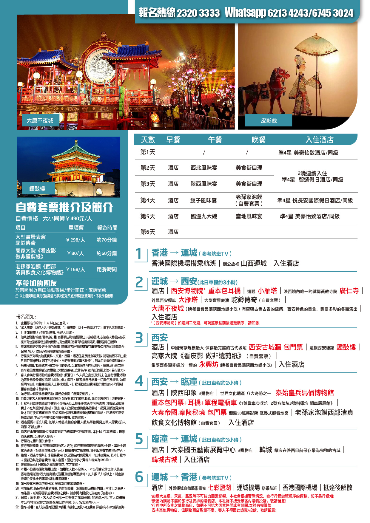 | 時間 | 成人價 | 小童價 | 團隊情況 | |