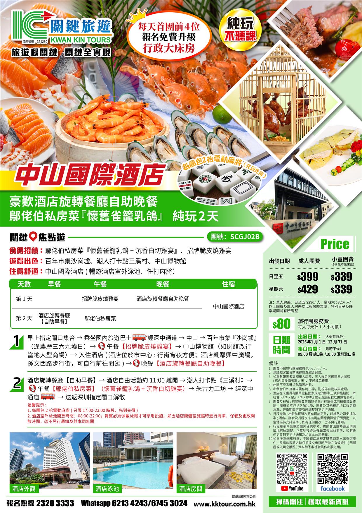 | 04月26日 | 星期日 | $399 | $339 |