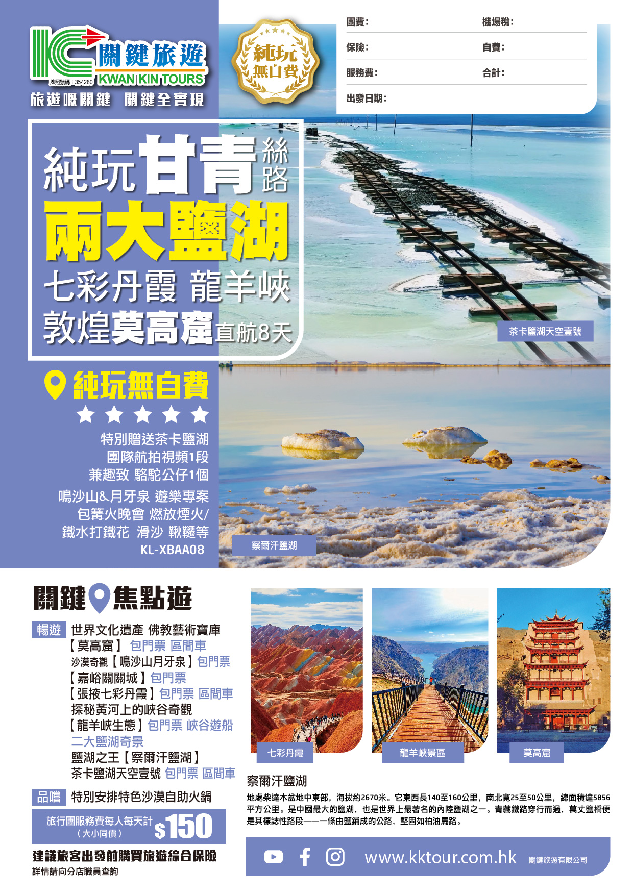 【純玩•絲路 甘青 二大鹽湖奇觀 敦煌莫高窟 】張掖七彩丹霞 龍羊峽 蘭州直航 8天