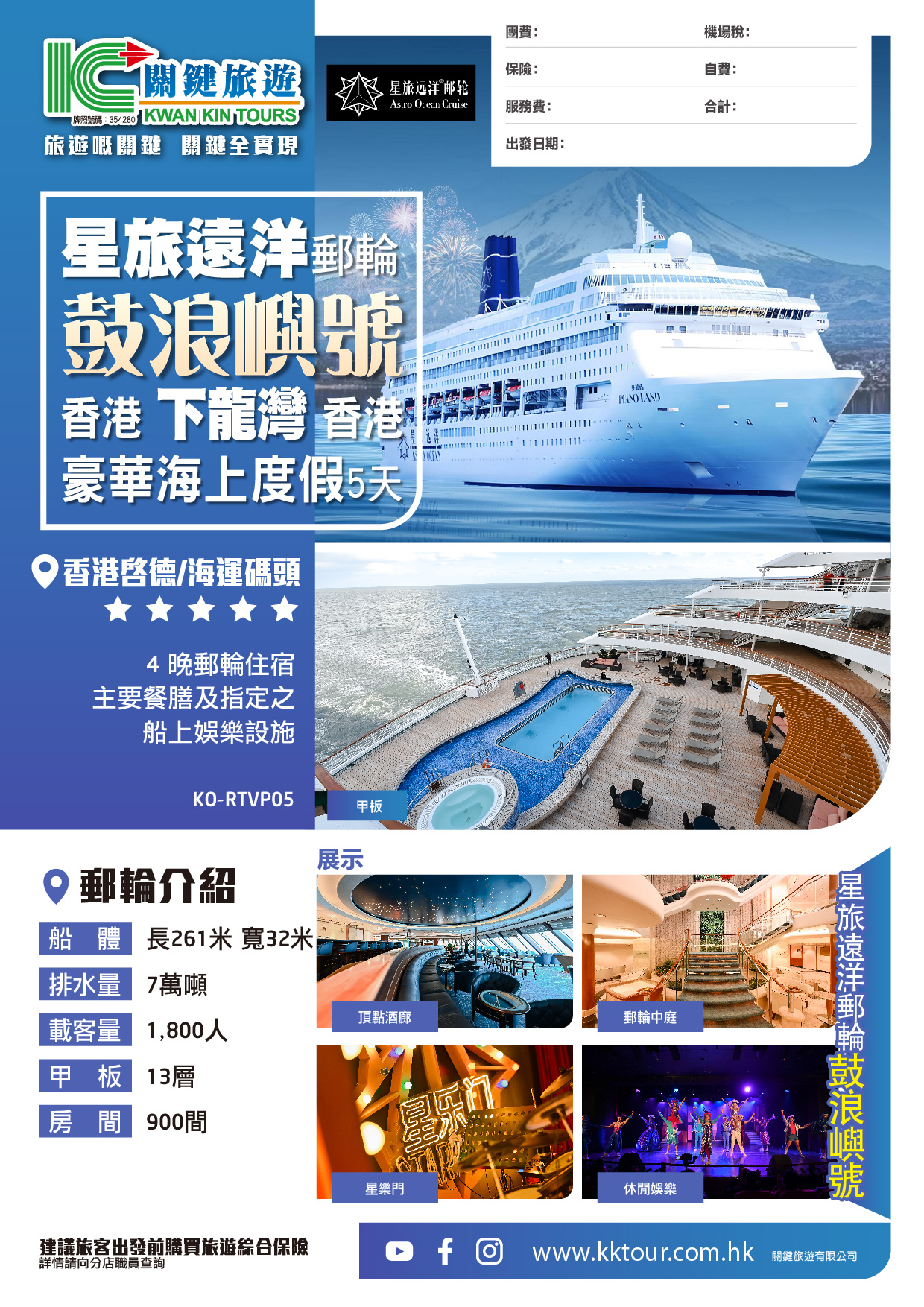 星旅遠洋【鼓浪嶼號】 香港-下龍灣-香港 5天4晚郵輪假期船票