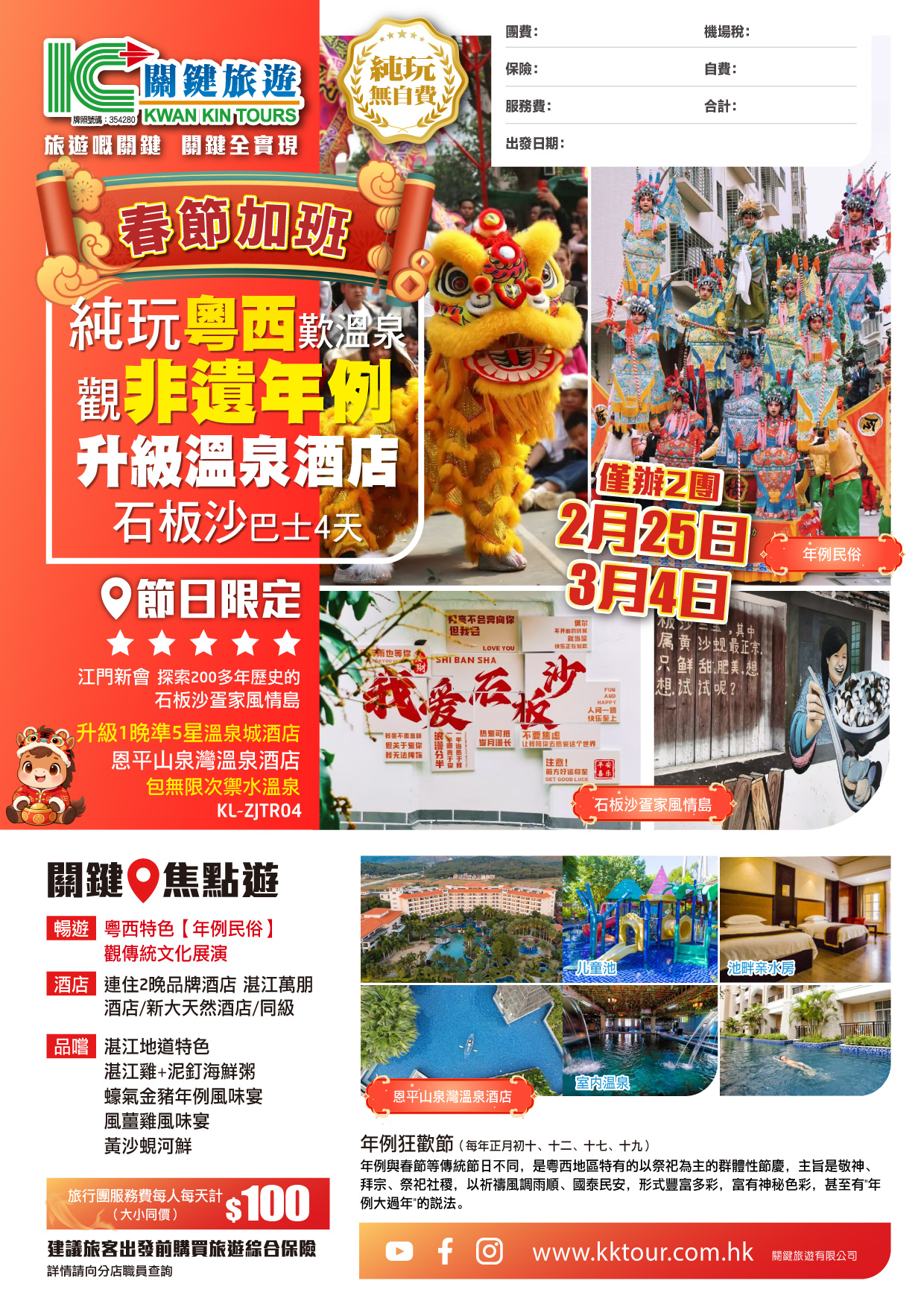 【純玩粵西湛江】 觀粵西特色非遺年例、歎溫泉、品美食巴士4天