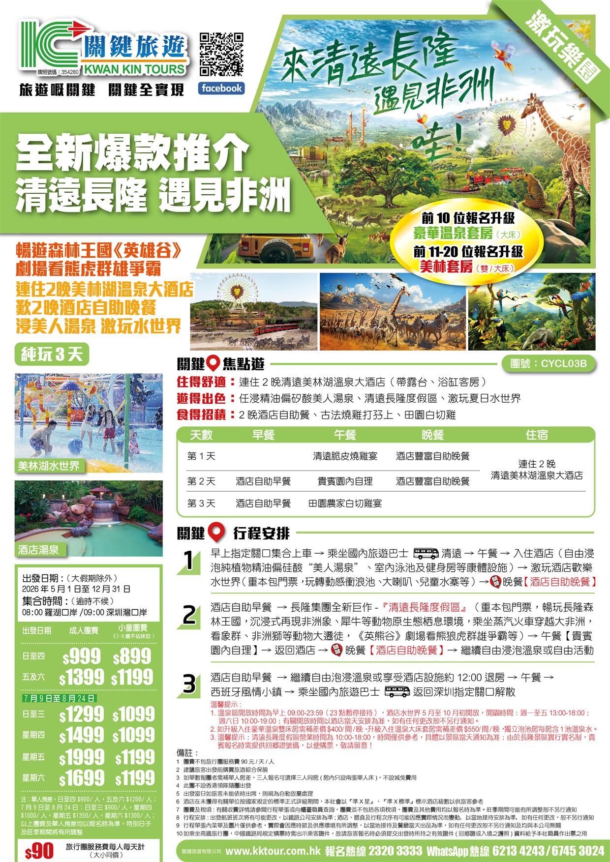 | 時間 | 成人價 | 小童價 | 團隊情況 | |