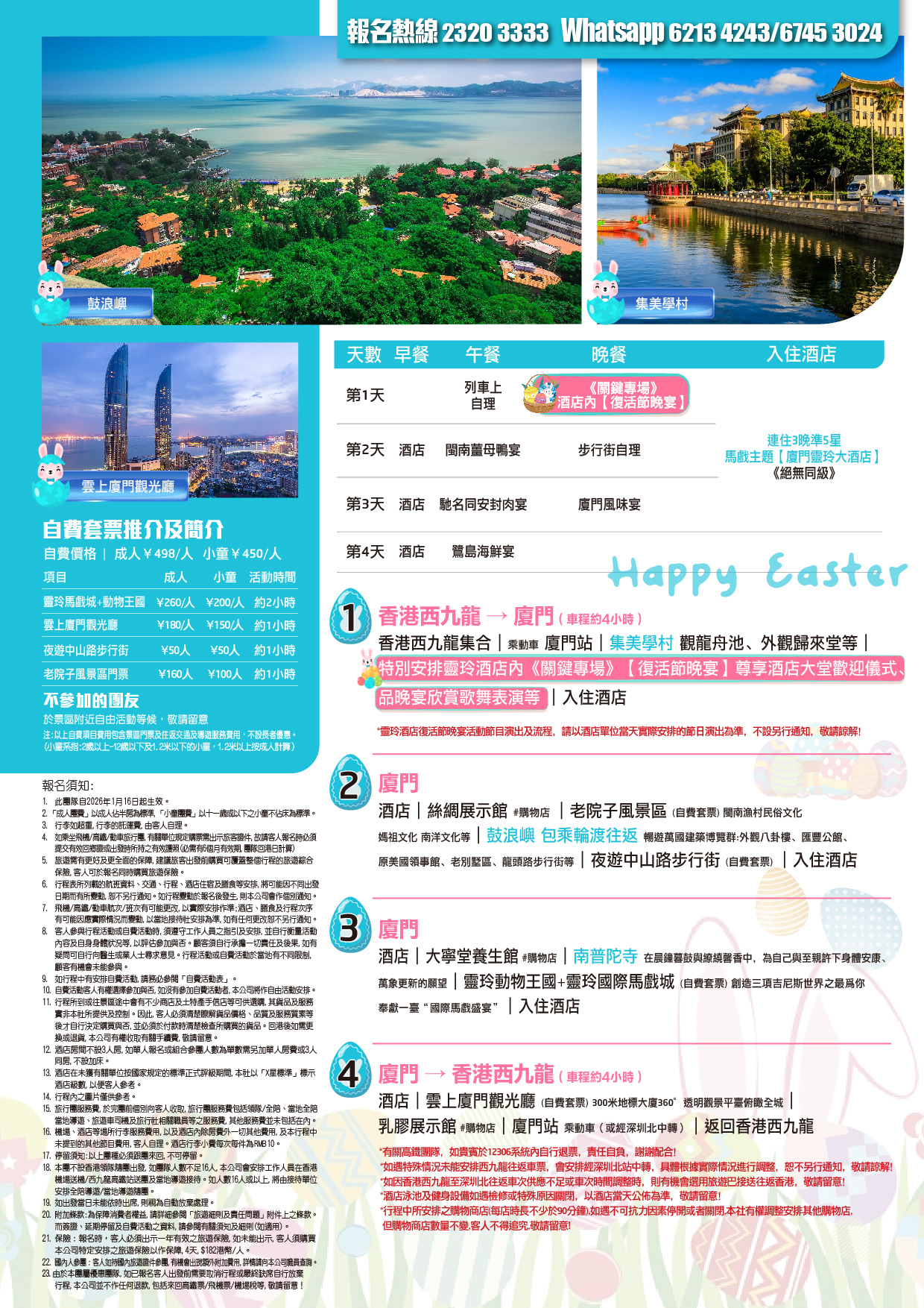 【復活節加班】廈門 保證3晚5星標準靈玲大酒店【品復活節晚宴】 西九龍往返 超值4天