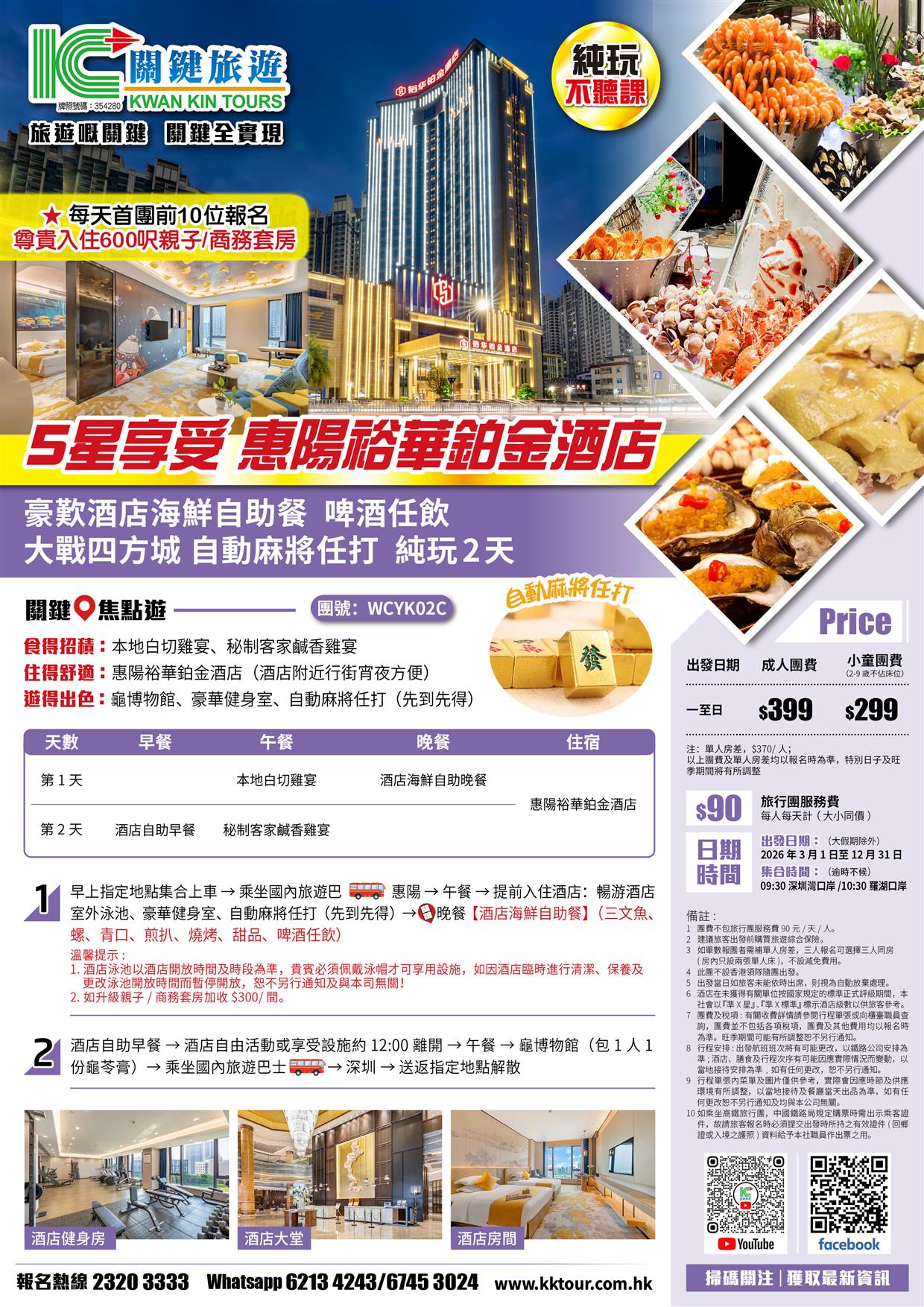 | 06月27日 | 星期六 | $399 | $299 |