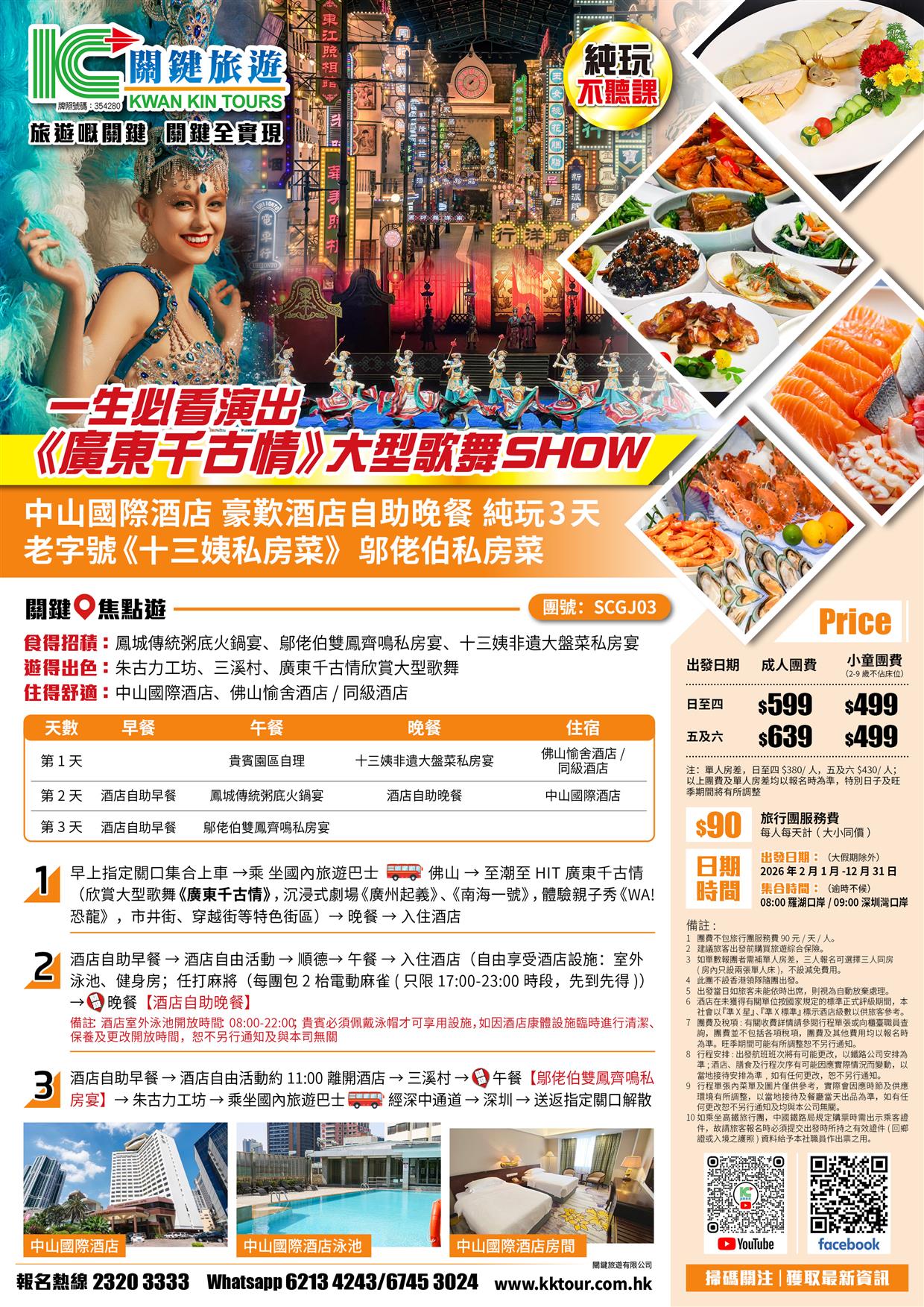 | 時間 | 成人價 | 小童價 | 團隊情況 | |