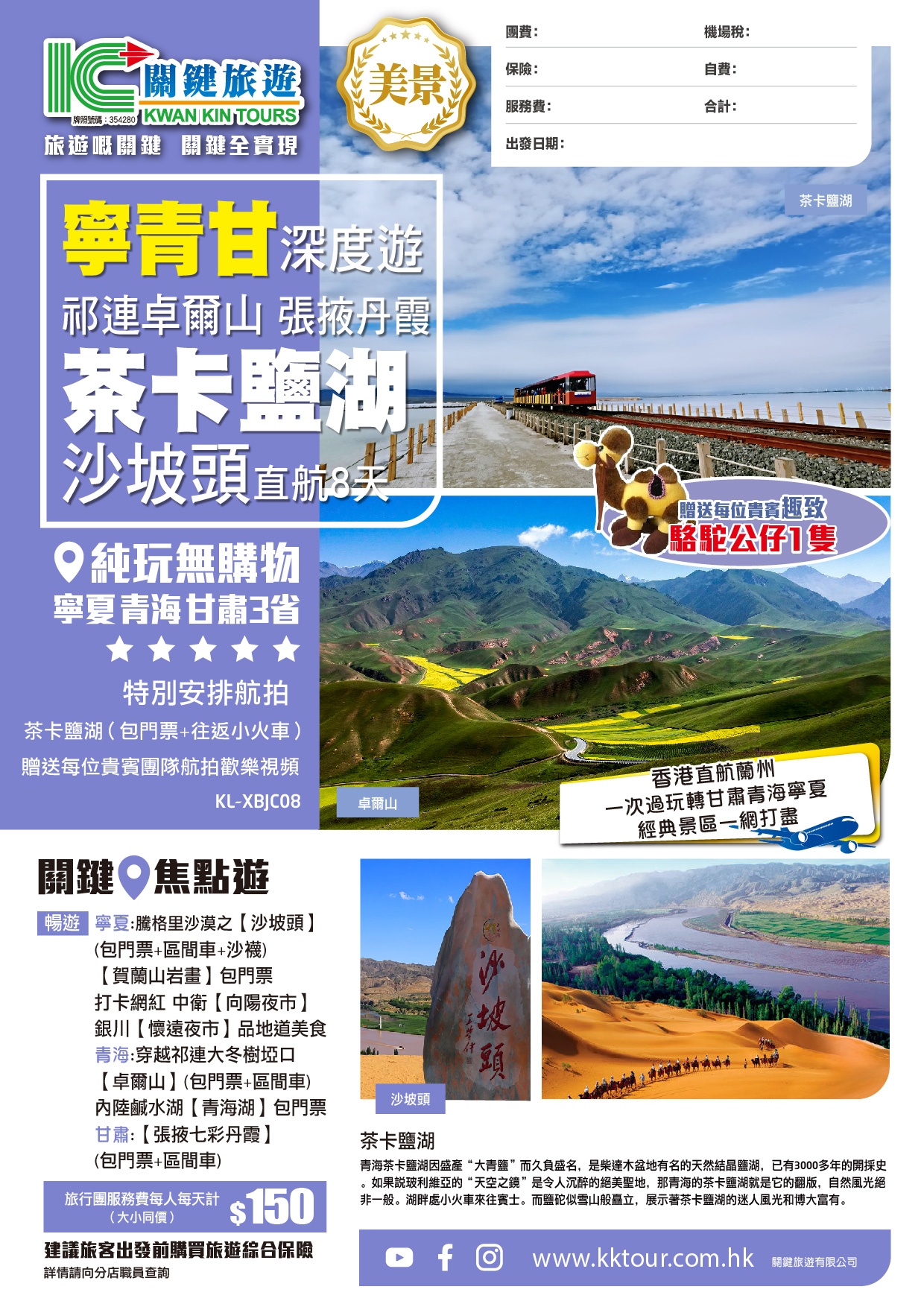 【純玩•寧青甘3省深度遊 祁連卓爾山 沙坡頭 茶卡鹽湖 張掖丹霞 】青海湖 蘭州直航8天