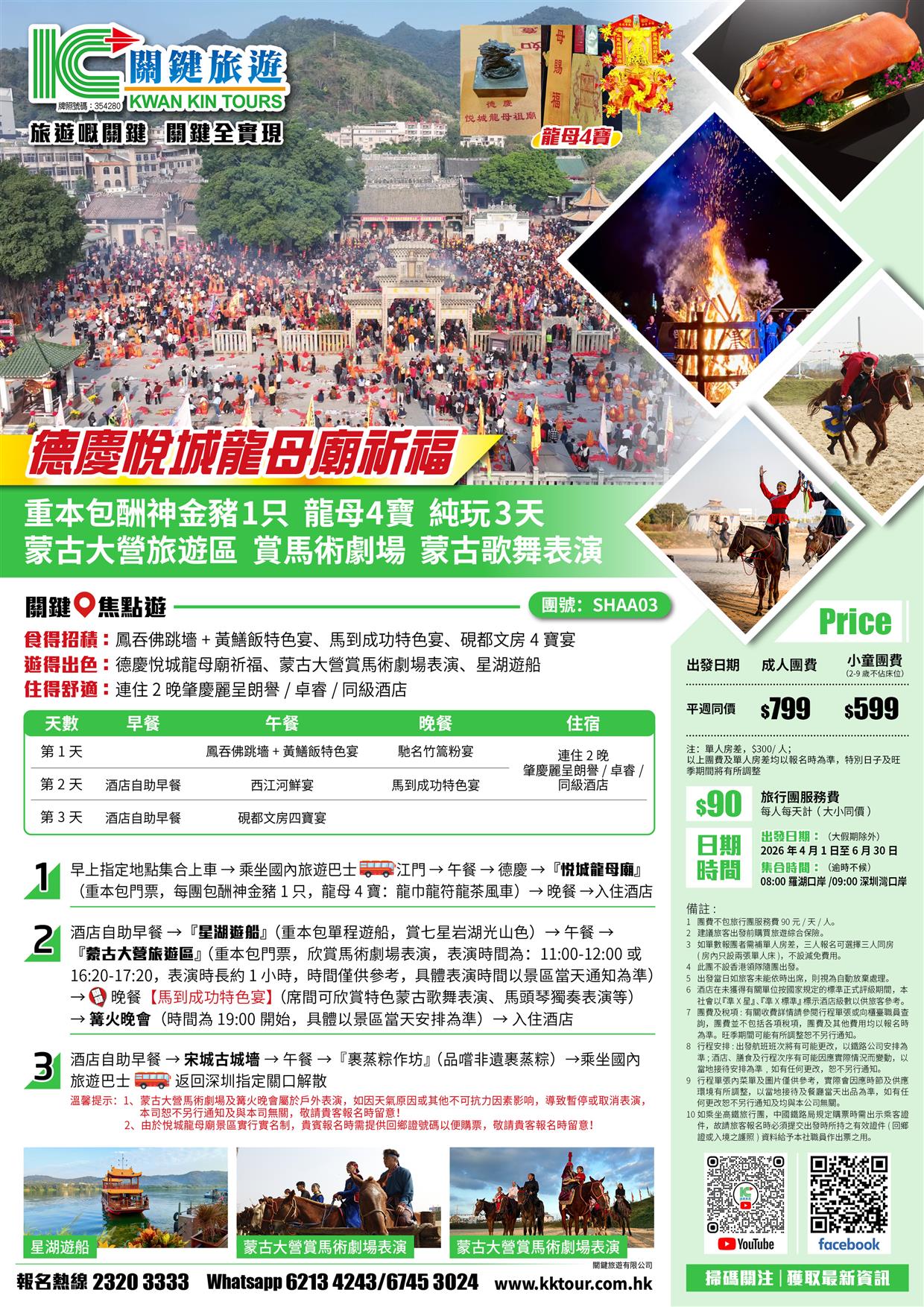 | 時間 | 成人價 | 小童價 | 團隊情況 | |