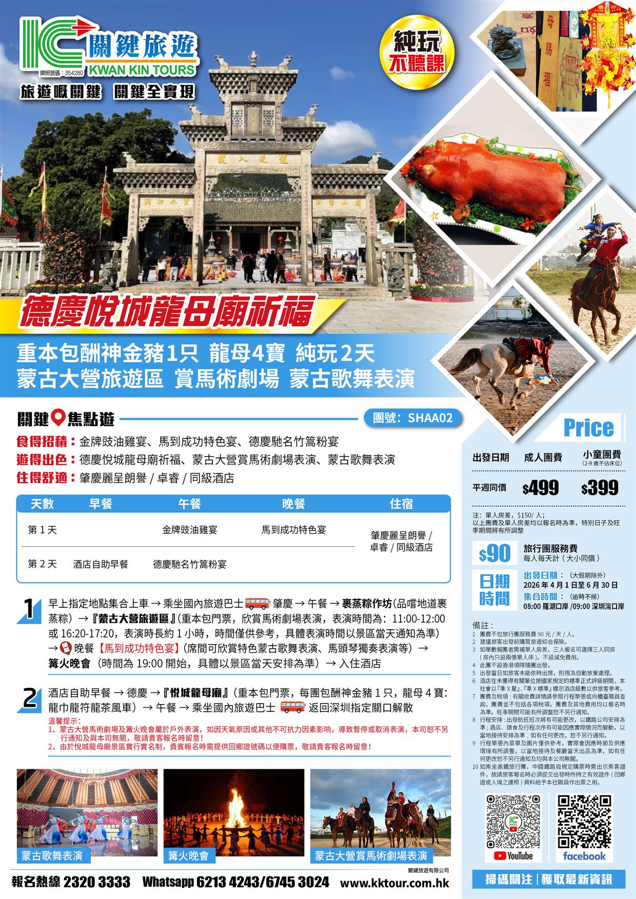 | 時間 | 成人價 | 小童價 | 團隊情況 | |