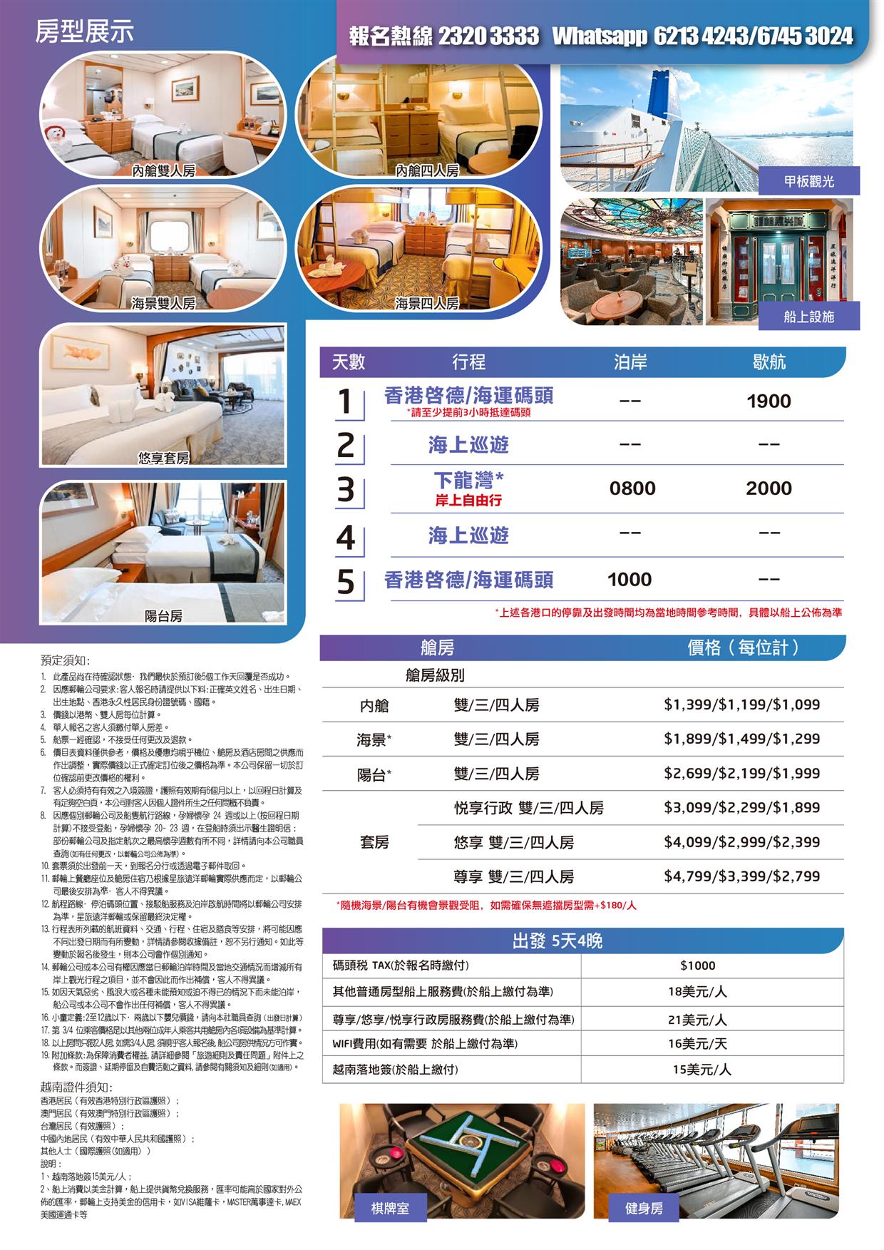 熱線電話 : 2320 3333 旅遊咨詢 WhatsApp : 6745 3024 / 6213 4243