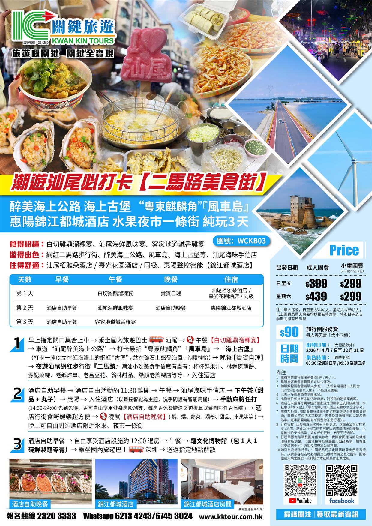 | 時間 | 成人價 | 小童價 | 團隊情況 | |