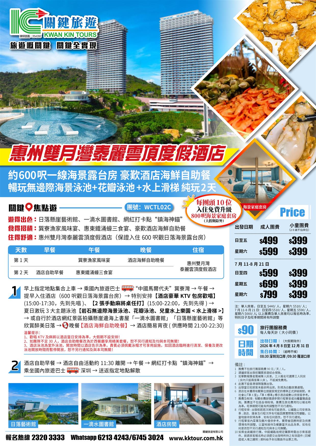 | 07月26日 | 星期日 | $599 | $399 |