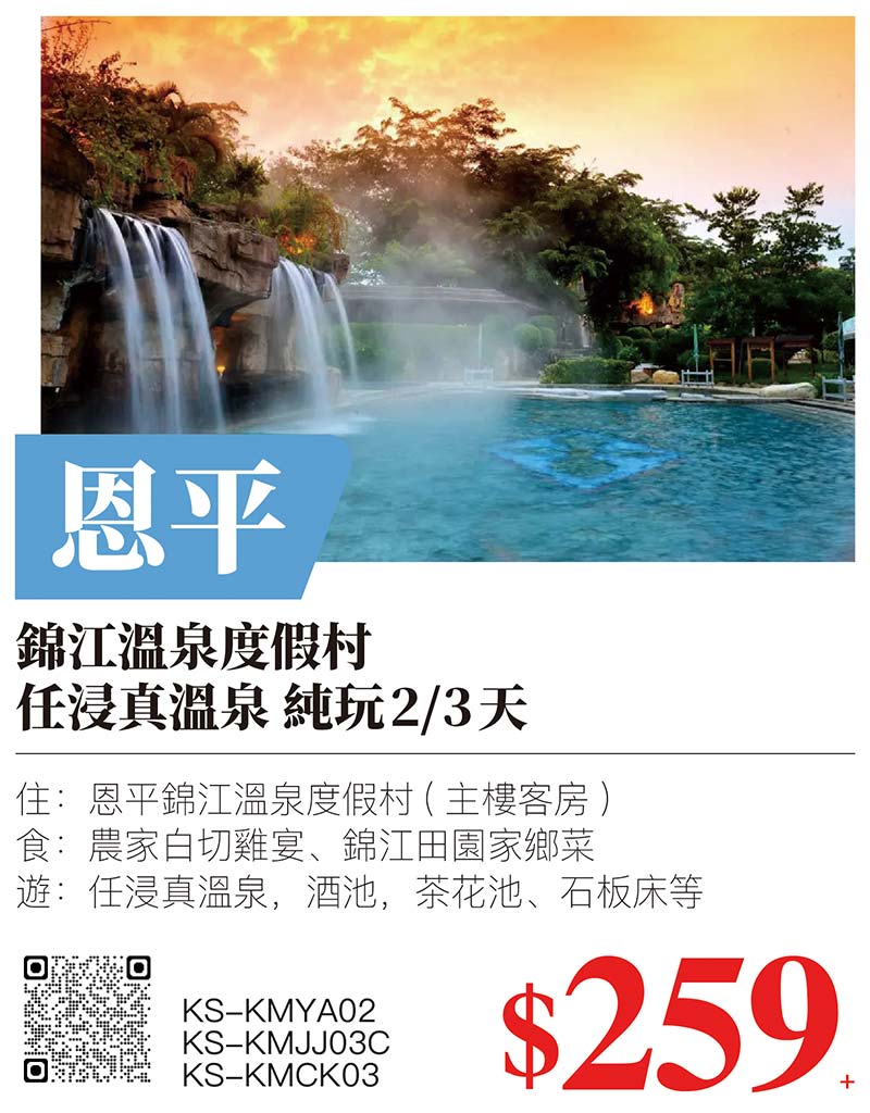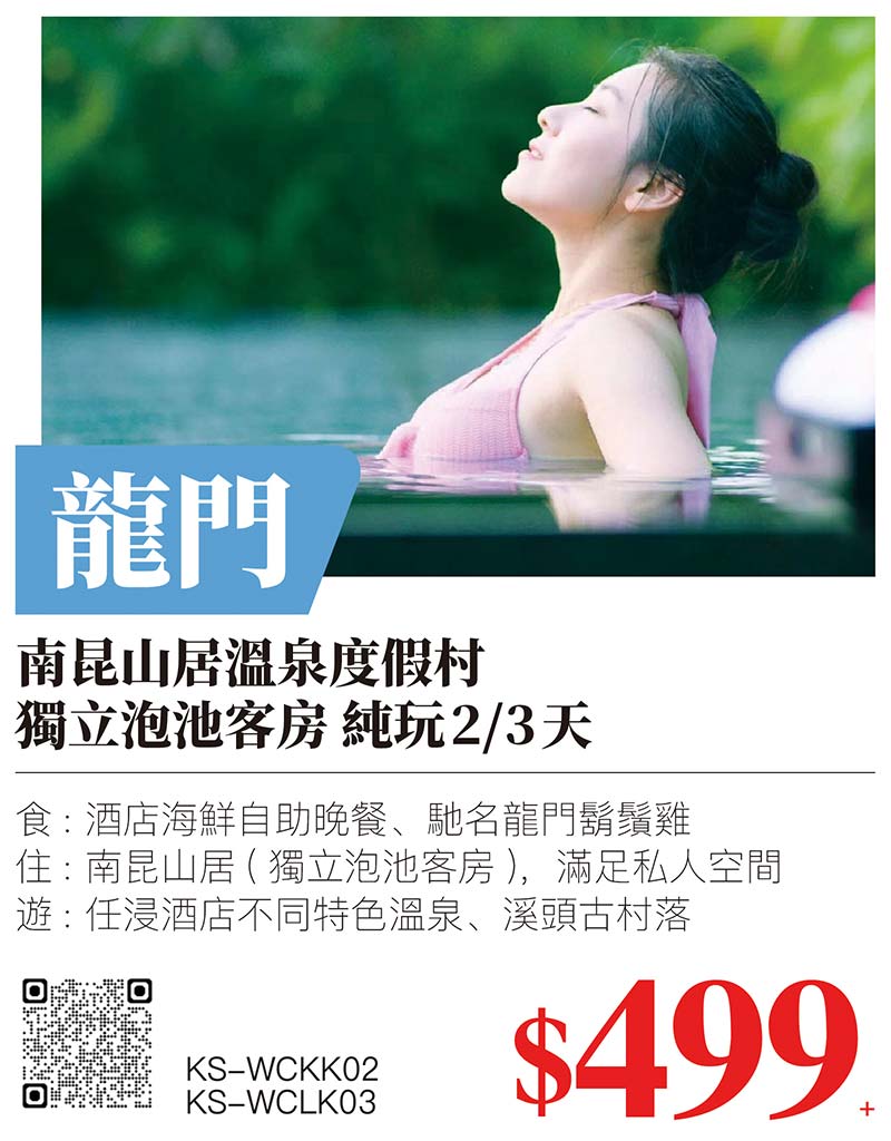 【養生溫泉系列】秋冬任浸溫泉 純玩2/3天 只要$259+!早報名早享受!