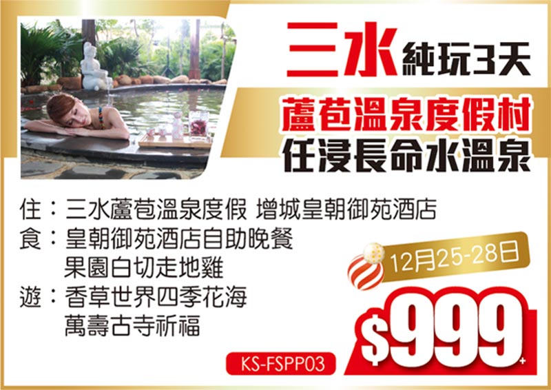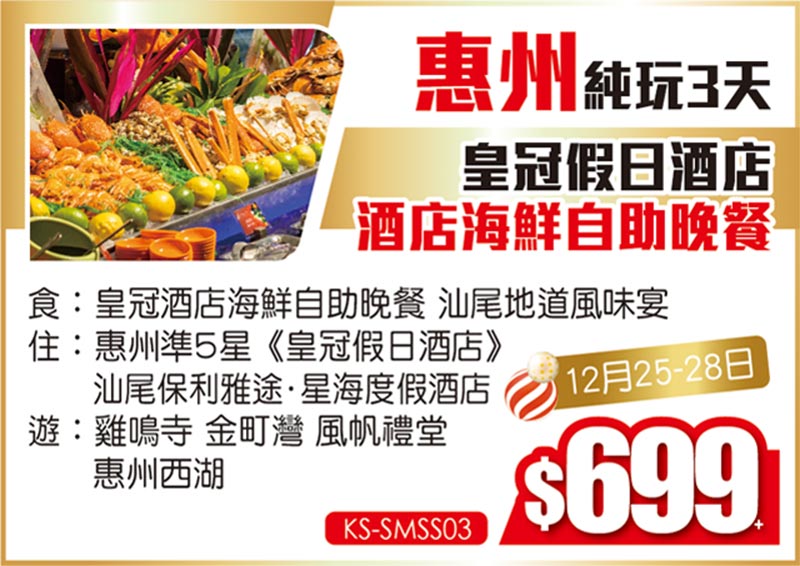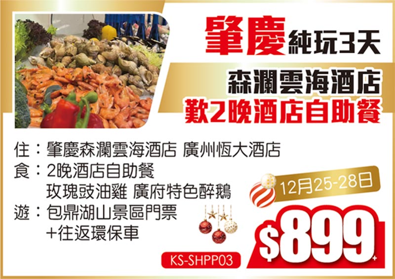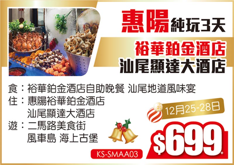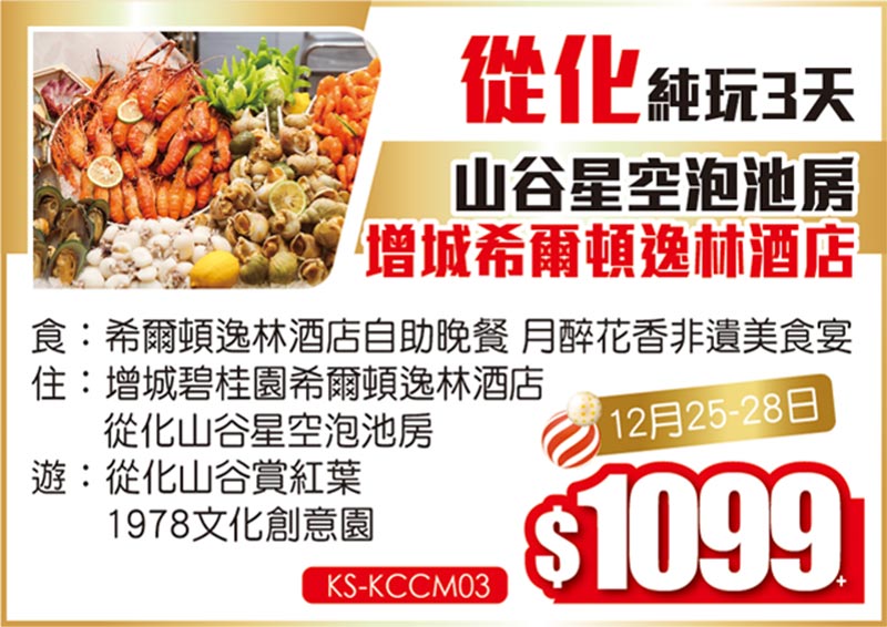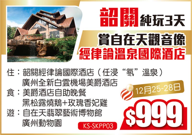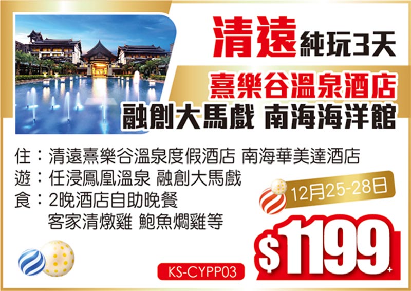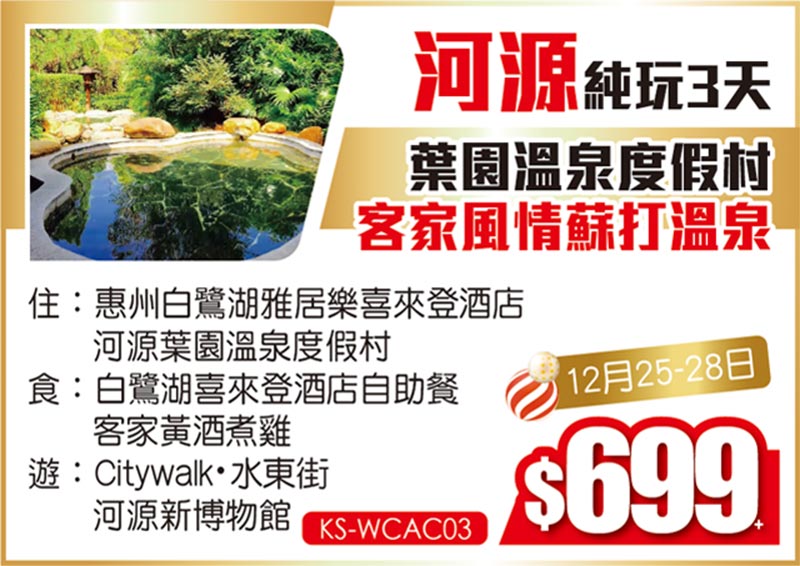 廣東短線【聖誕出遊】星級酒店 歎海鮮自助餐 泡養生溫泉 賞表演美景 純玩3天 只要699+!!!