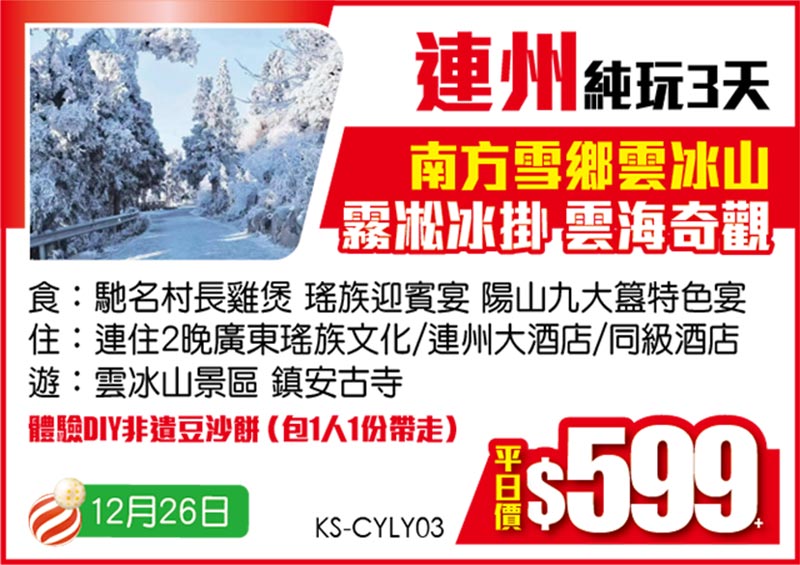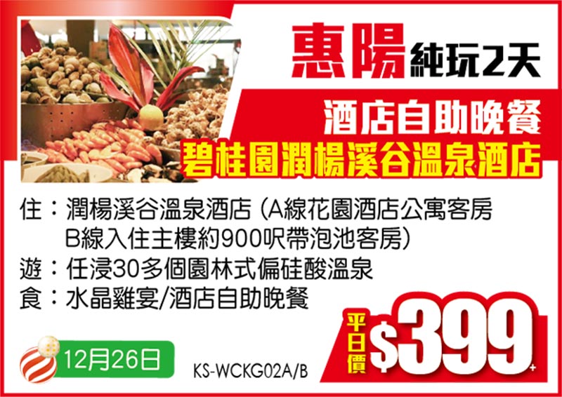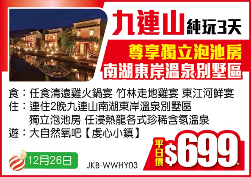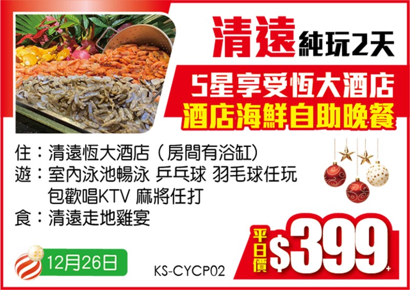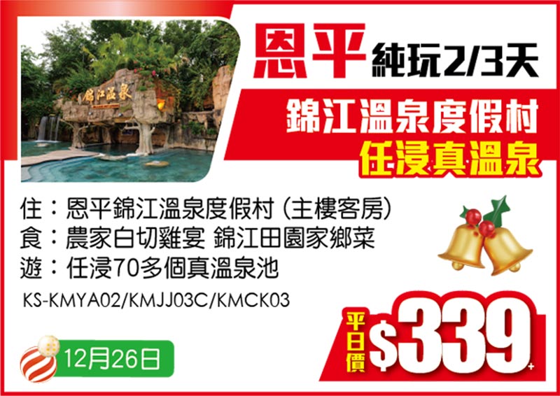 聖誕出發【平日價】純玩2/3天 只要$229+!