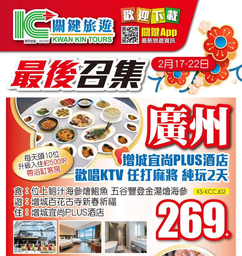 春節團隊【最後召集】2月17-22日出發 歎酒店 嚐美食 只要269+!!!