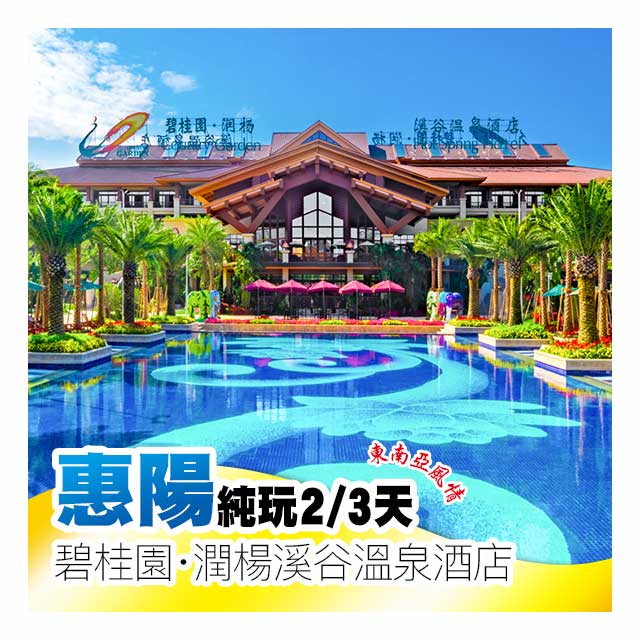 【2人同行 第2位-200】惠陽碧桂園潤楊溪谷溫泉酒店 任浸園林式偏硅酸溫泉 純玩2/3天