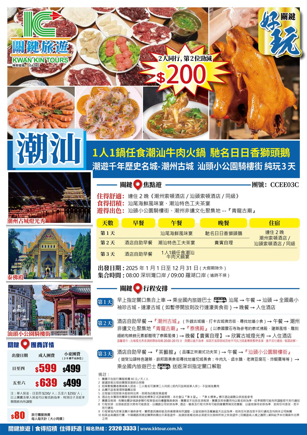 | 12月07日 | 星期日 | $599 | $499 | 快成團 |