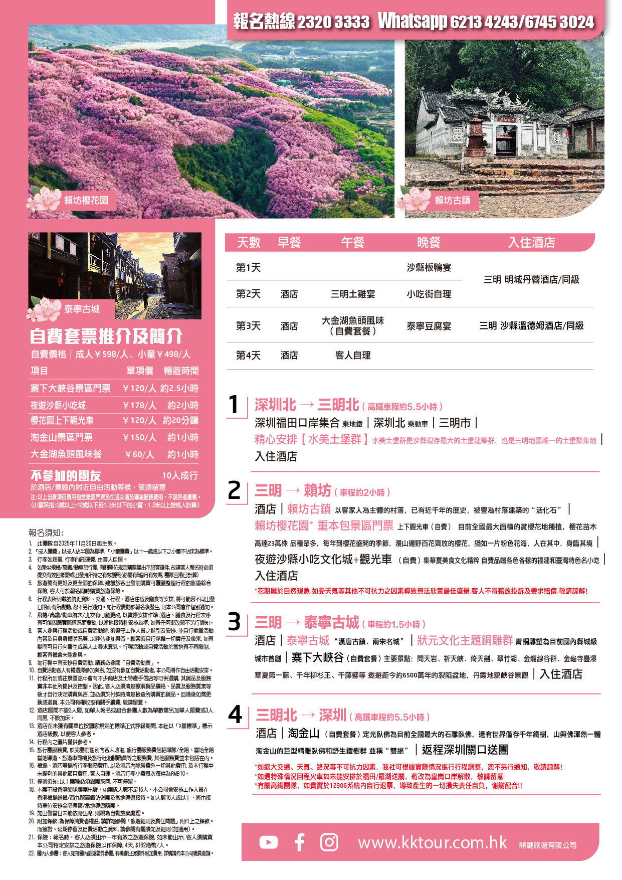 | 時間 | 成人價 | 小童價 | 團隊情況 | |