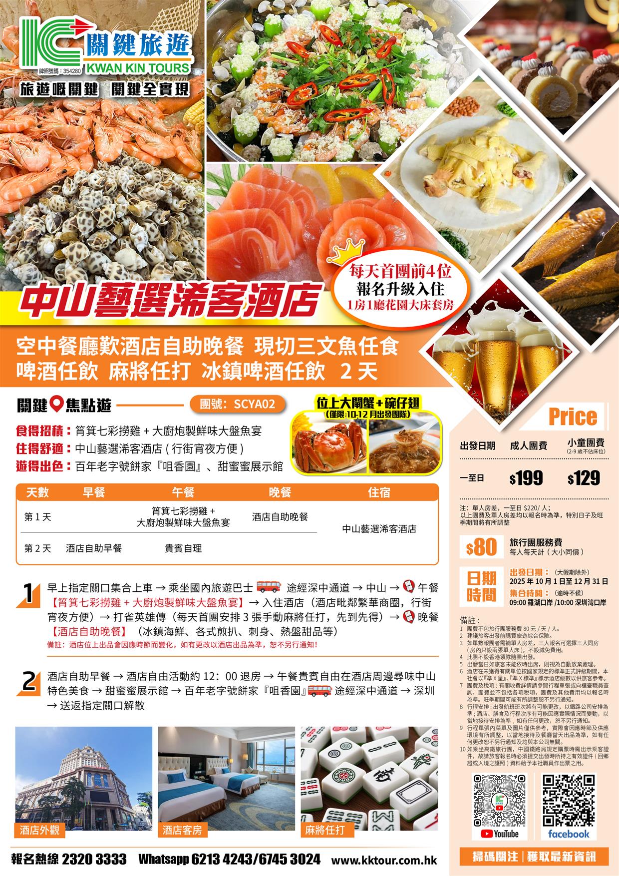| 11月08日 | 星期六 | $199 | $129 | 快成團 |