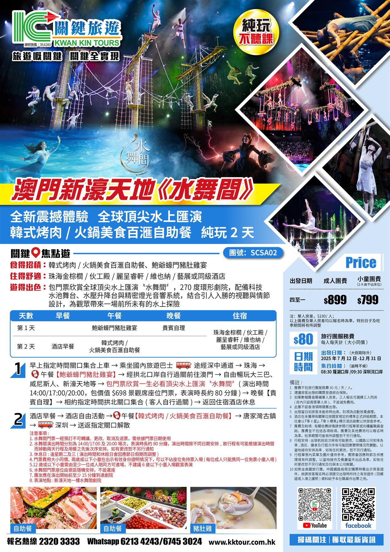 | 時間 | 成人價 | 小童價 | 團隊情況 | |