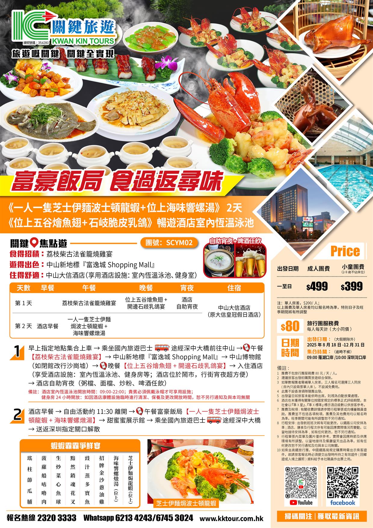 | 02月06日 | 星期五 | $499 | $399 | 收客中 |
