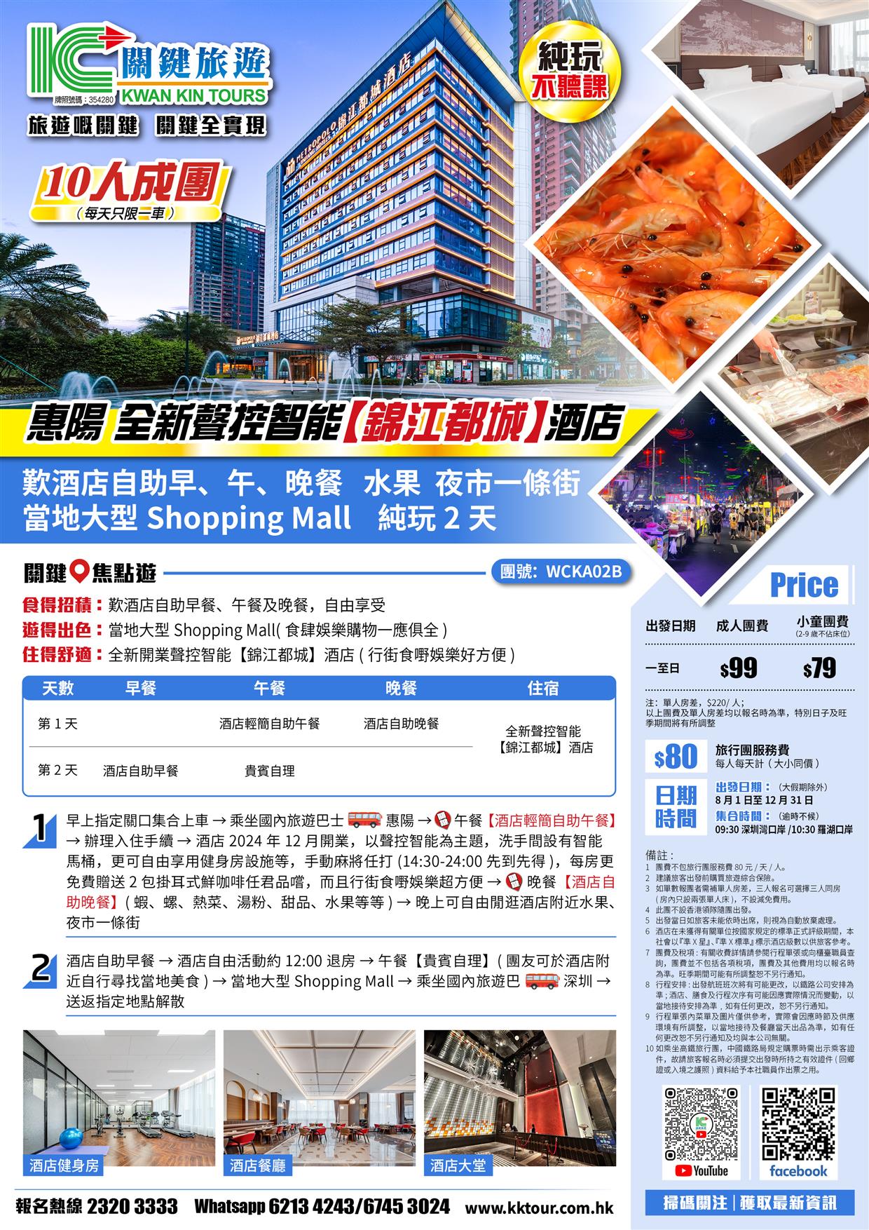 | 02月03日 | 星期二 | $99 | $79 | 收客中 |