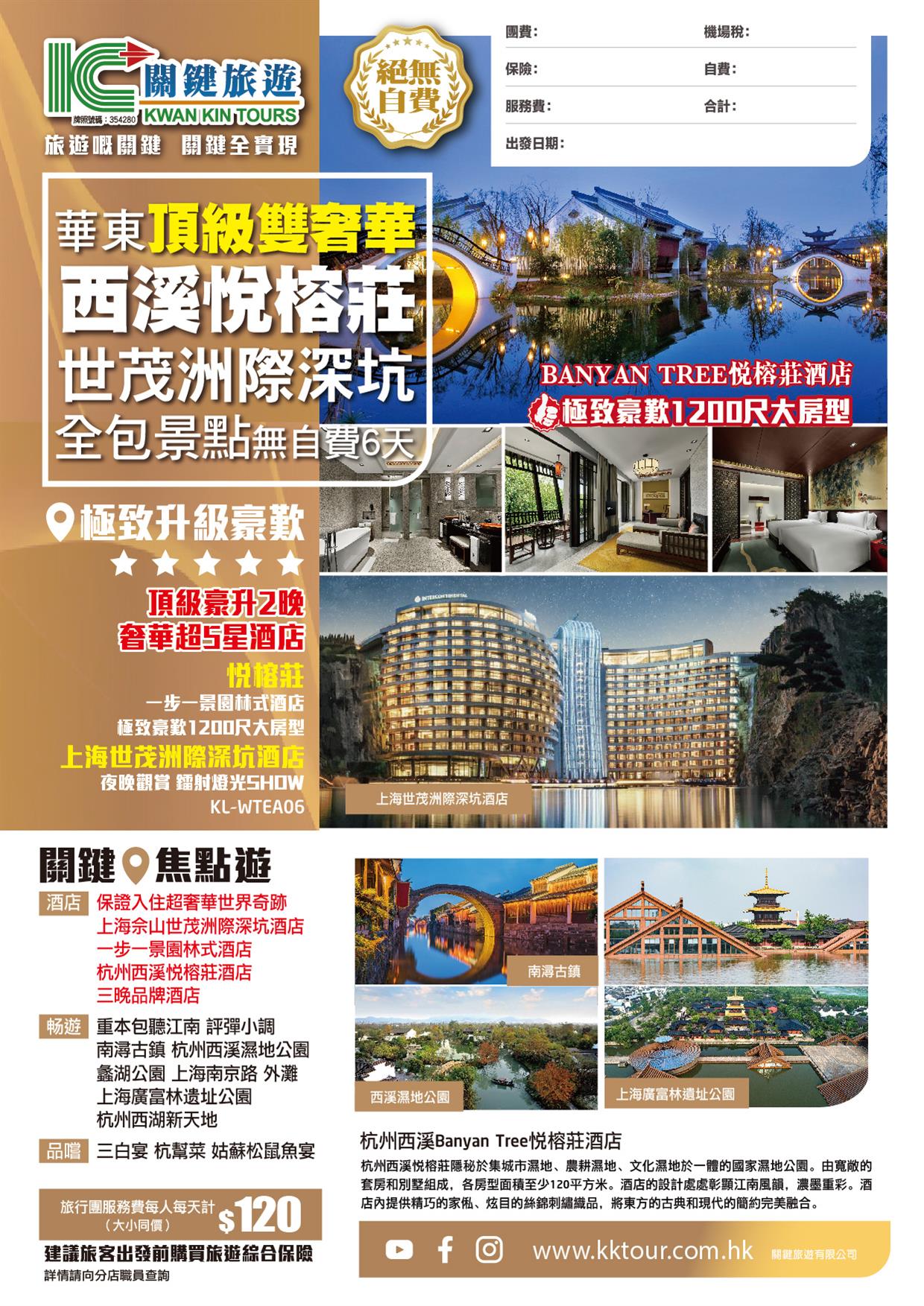 【華東頂級雙奢華】杭州西溪悅榕莊酒店+上海世茂洲際深坑酒店 全包景點 無自費直航6天