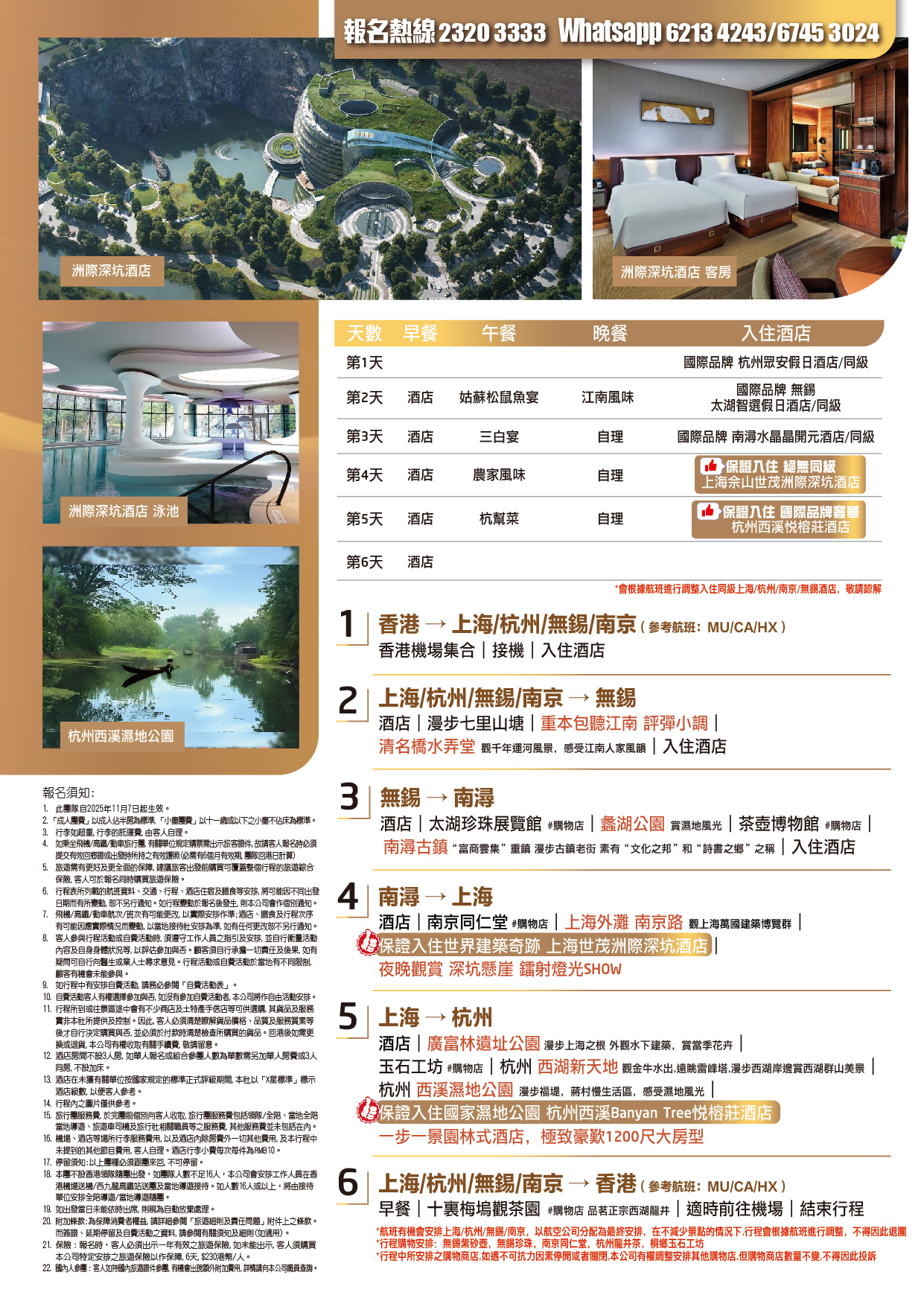 暢遊:杭州西溪濕地公園、重本包聽江南【評彈小調】、蠡湖公園、上海外灘+南京路、上海廣富林遺址公園、杭州西湖新天地