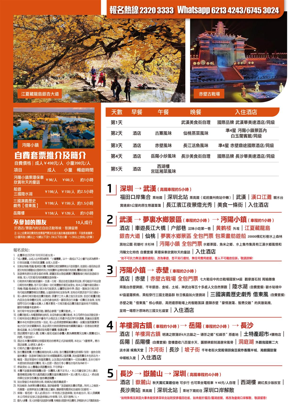 【金秋湖北】武漢 藏龍島銀杏大道 夢裏水鄉萬株水杉 洞庭秋色 美食打卡高鐵5天