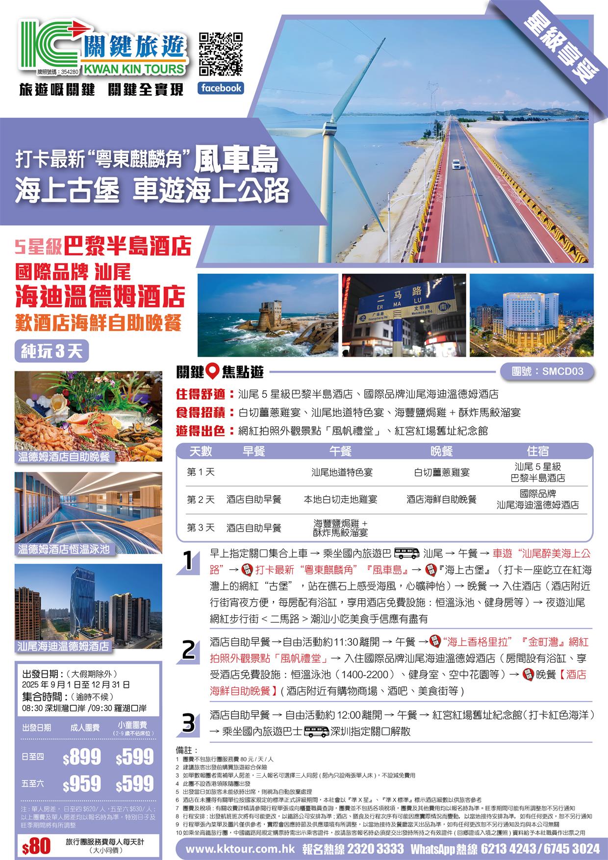 | 12月03日 | 星期三 | $899 | $599 | 收客中 |