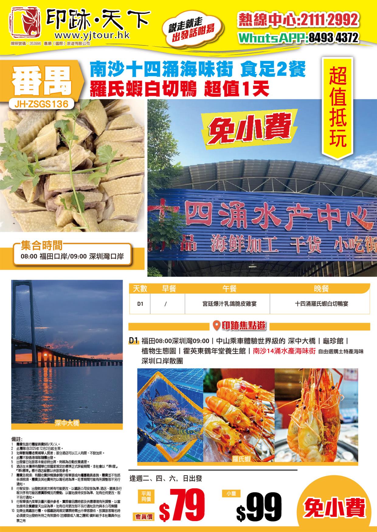 | 時間 | 成人價 | 小童價 | 團隊情況 | |
