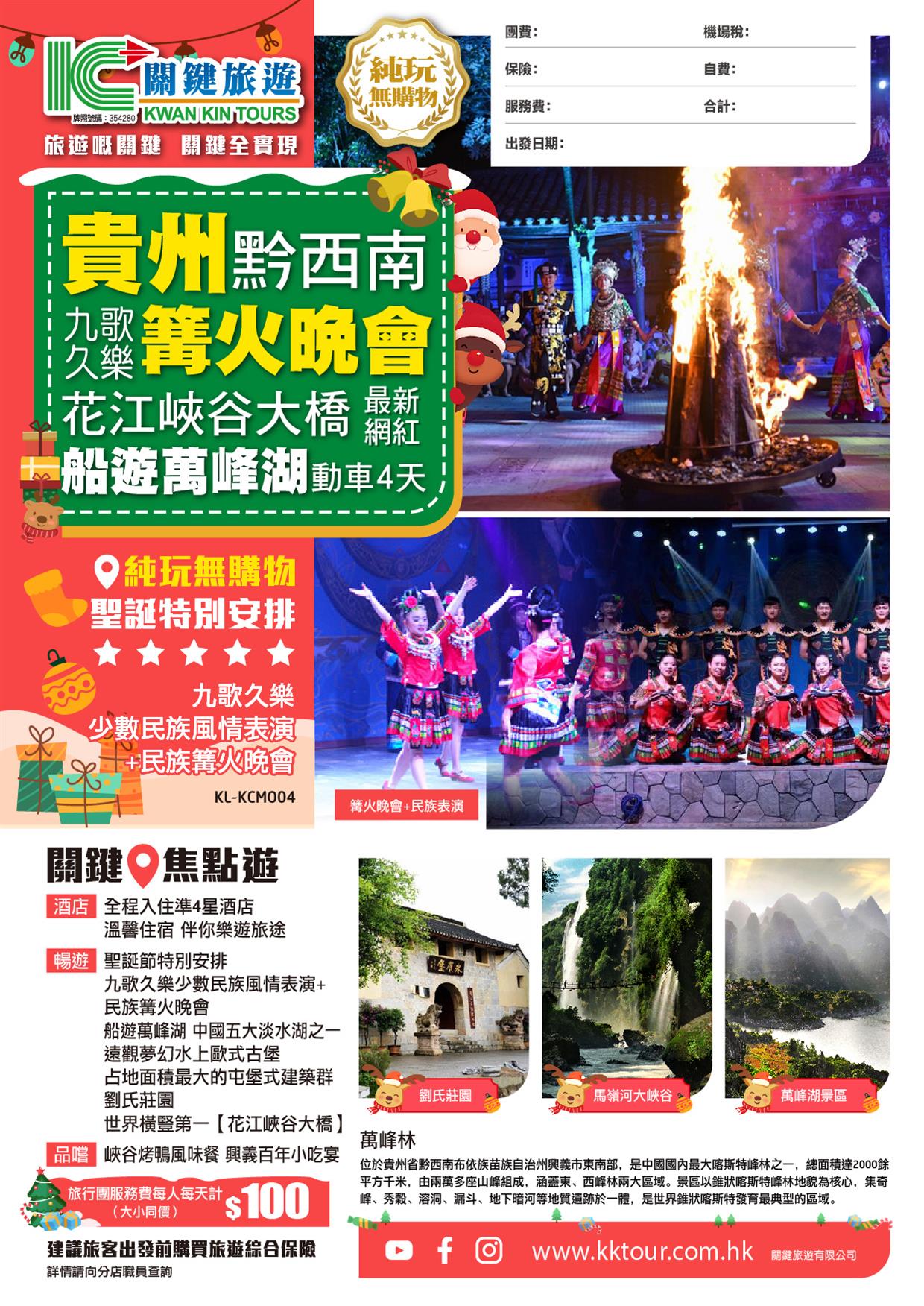 【聖誕加班 純玩】貴州 花江峽谷大橋 九歌久樂篝火民族表演 船遊萬峰湖 動車4天