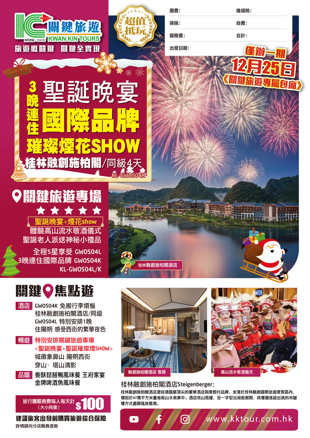 【聖誕加班】桂林 陽朔 聖誕晚宴+煙花SHOW 象鼻山 超值4天