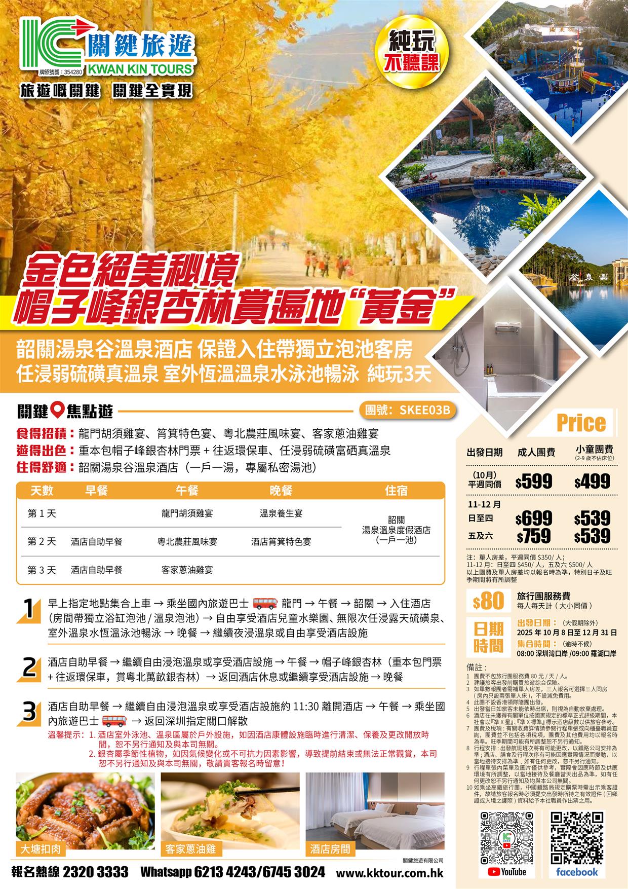 | 時間 | 成人價 | 小童價 | 團隊情況 | |
