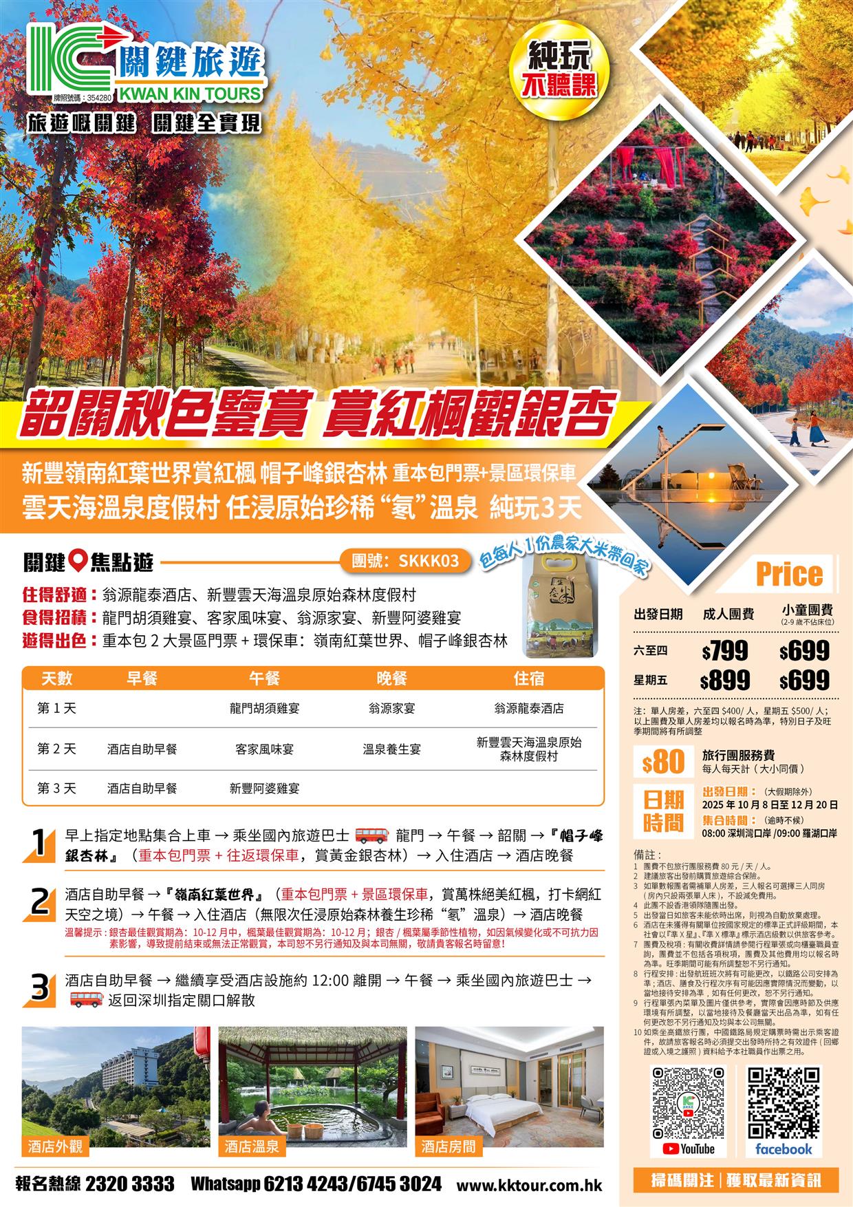 | 11月08日 | 星期六 | $799 | $599 |