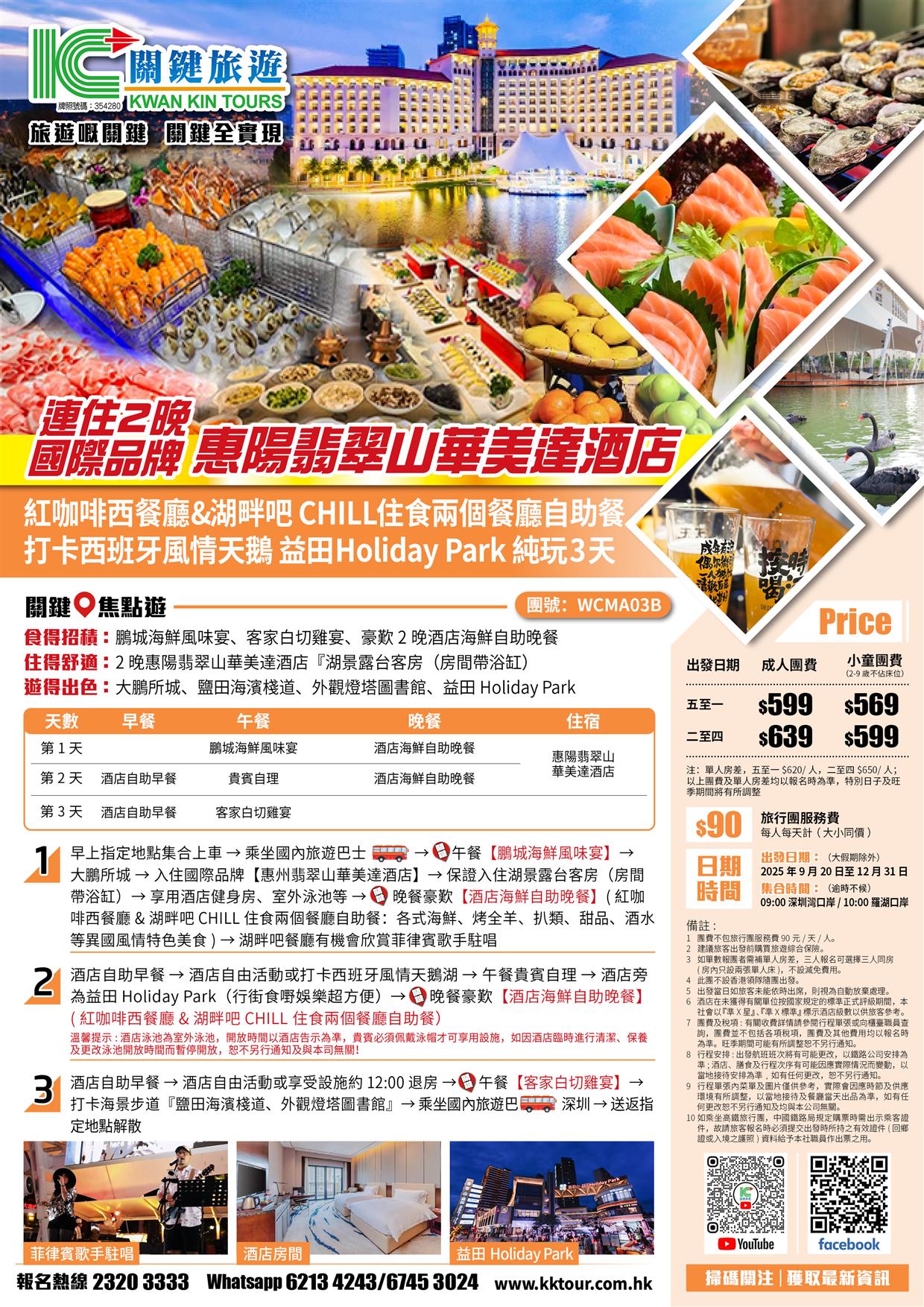 | 12月17日 | 星期三 | $639 | $599 | 收客中 |