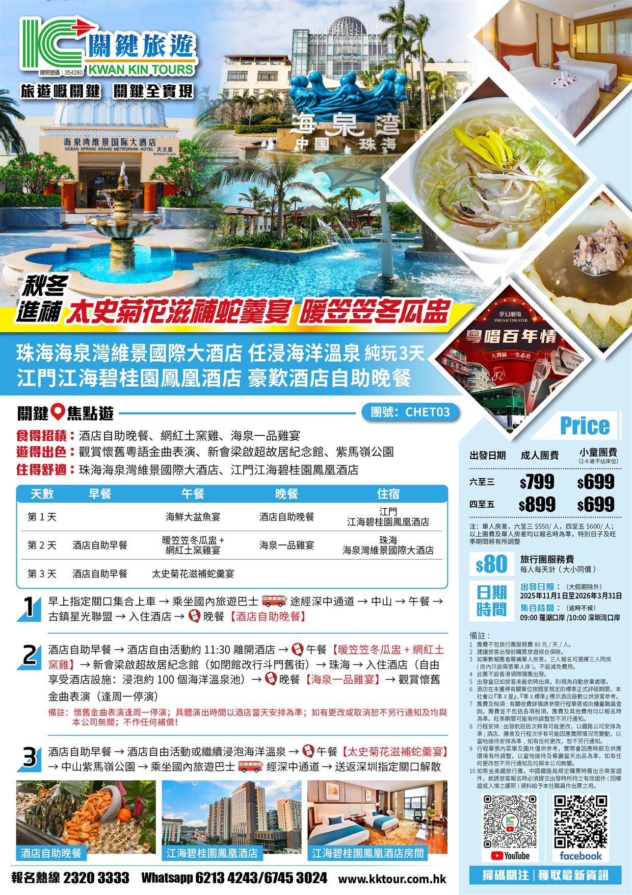 | 時間 | 成人價 | 小童價 | 團隊情況 | |