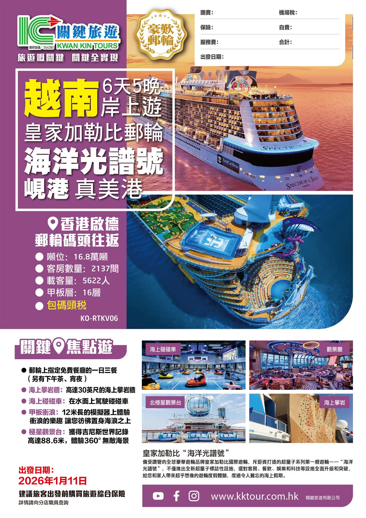 皇家加勒比●海洋光譜號 香港-真美(越南)-峴港(真美港)-香港6天5晚