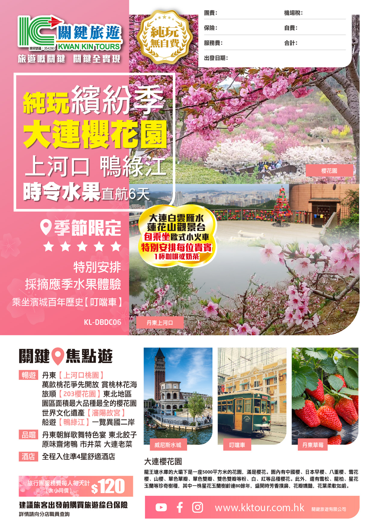 【純玩•繽紛季•大連櫻花園 丹東上河口 採摘時令水果 鴨綠江遊船 瀋陽故宮】 直航6天