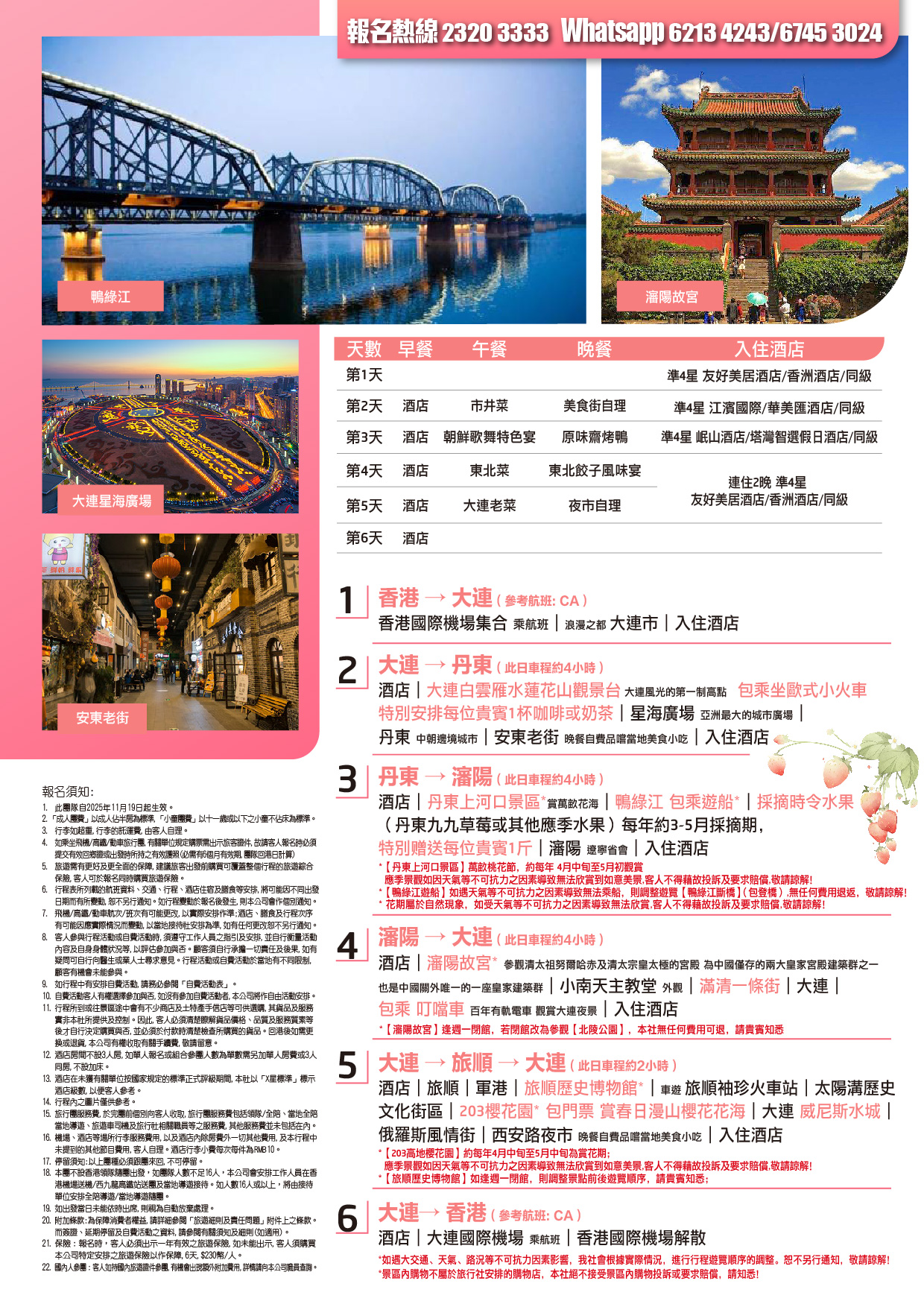 酒店早餐→大連國際機場搭乘航班→香港國際機場解散