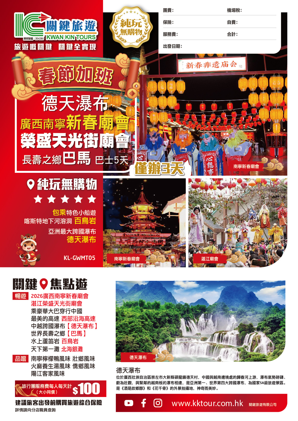 | 時間 | 成人價 | 小童價 | 團隊情況 | |