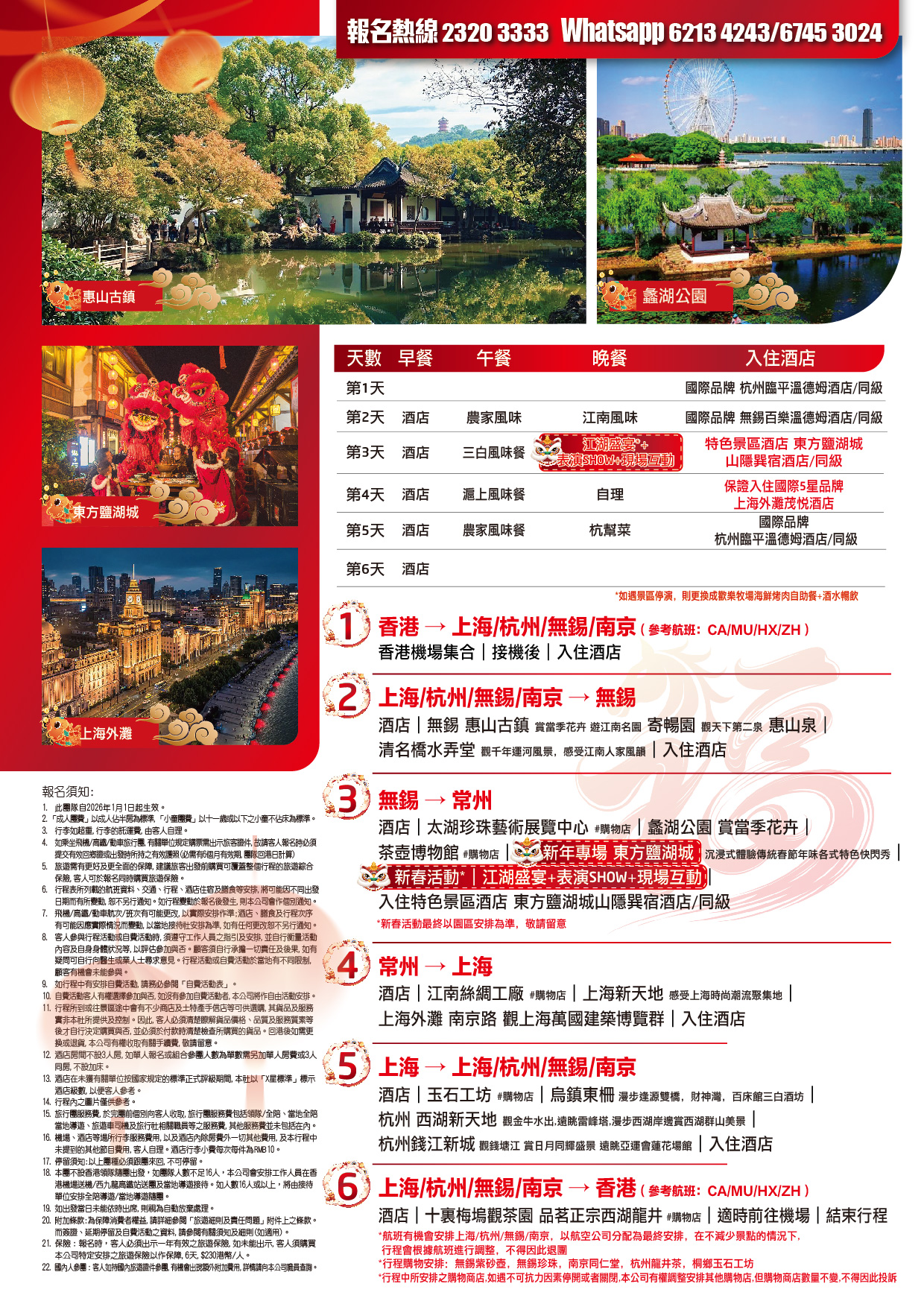 暢遊:新年專場【東方鹽湖城】沉浸式體驗傳統春節年味各式特色快閃秀、【惠山古鎮】賞當季花卉、清名橋水弄堂、西湖新天地、烏鎮東柵